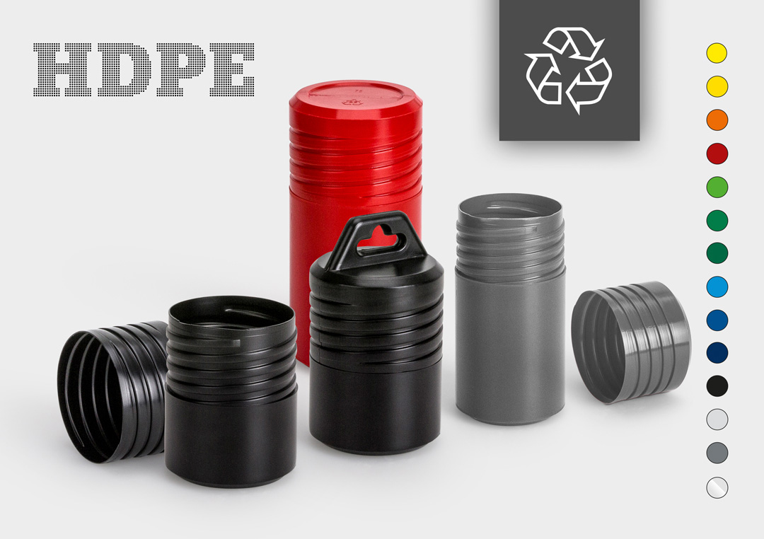 - Polyethylene (PE) made from 100% recycled plastic (post-consumer recyclate)