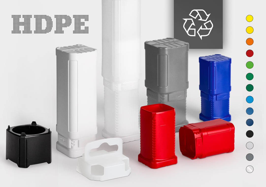 - Polyethylene (PE) made from 100% recycled plastic (post-consumer recyclate)